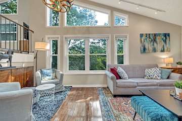 Slopeside Lounge is a dog-friendly Poconos vacation rental set within the amenity-packed community of Saw Creek Estates. Here, guests can experience the best of the Pocono Mountains with exclusive access to a private ski area, sparkling lakes, a sandy beach, multiple indoor and outdoor pools, sports courts, playgrounds, and miles of scenic trails. This inviting Saw Creek Estates rental combines the comfort of a mountain home with endless opportunities for recreation, making it the perfect escape for families, friends, and their dogs.